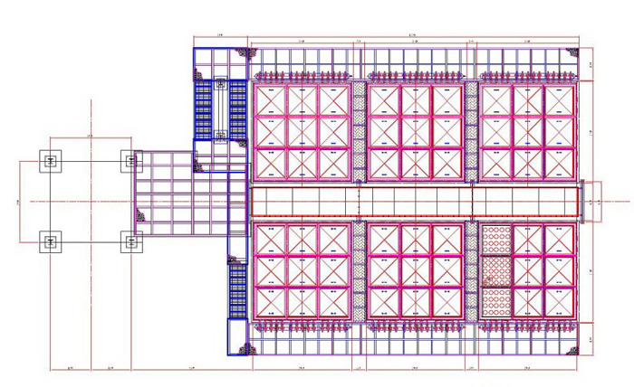 電爐除塵器采用離線清灰,離線清灰是避免粉塵二次吸附的手段,可提高清灰效率。其中,除塵器凈化倉設計成小單室,清灰系統運行時,一室參與離線清灰,閉掉一個室的過濾面積對整個系統基本無影響。可使除塵器長期穩定運行。