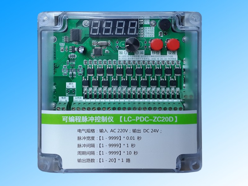 脈沖袋式除塵器控制儀 LC-PDC-ZC20D (在線式 20路 ),此款控制儀電壓有24V和220V兩款,購買時請告知客服選用電壓,以免為您造成不必要的損失。此款脈沖控制儀輸出路數可調,凡是所控脈沖閥數量為20個以下,全部可以使用。